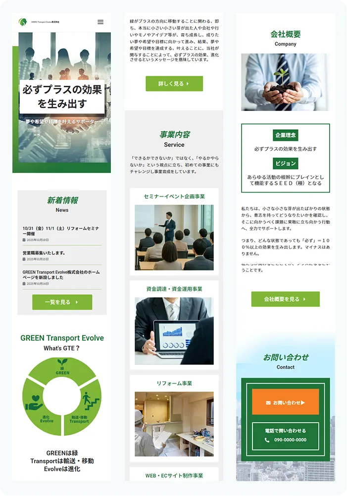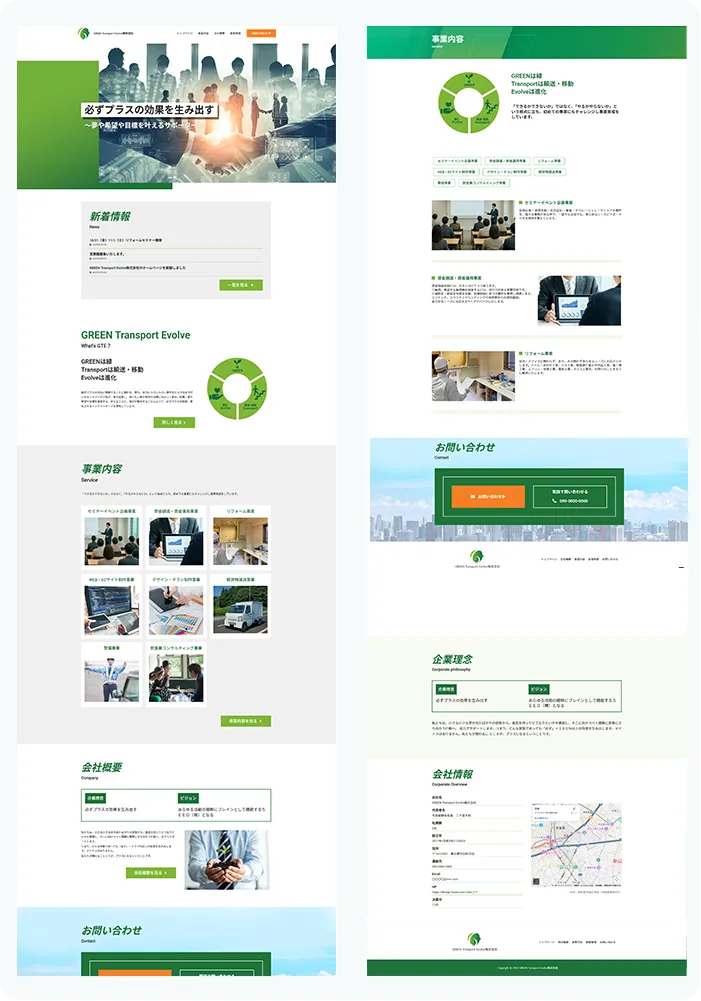 企業名やコンセプトカラーである緑を基調に、信頼感と親しみやすさを両立したデザインを意識しました。